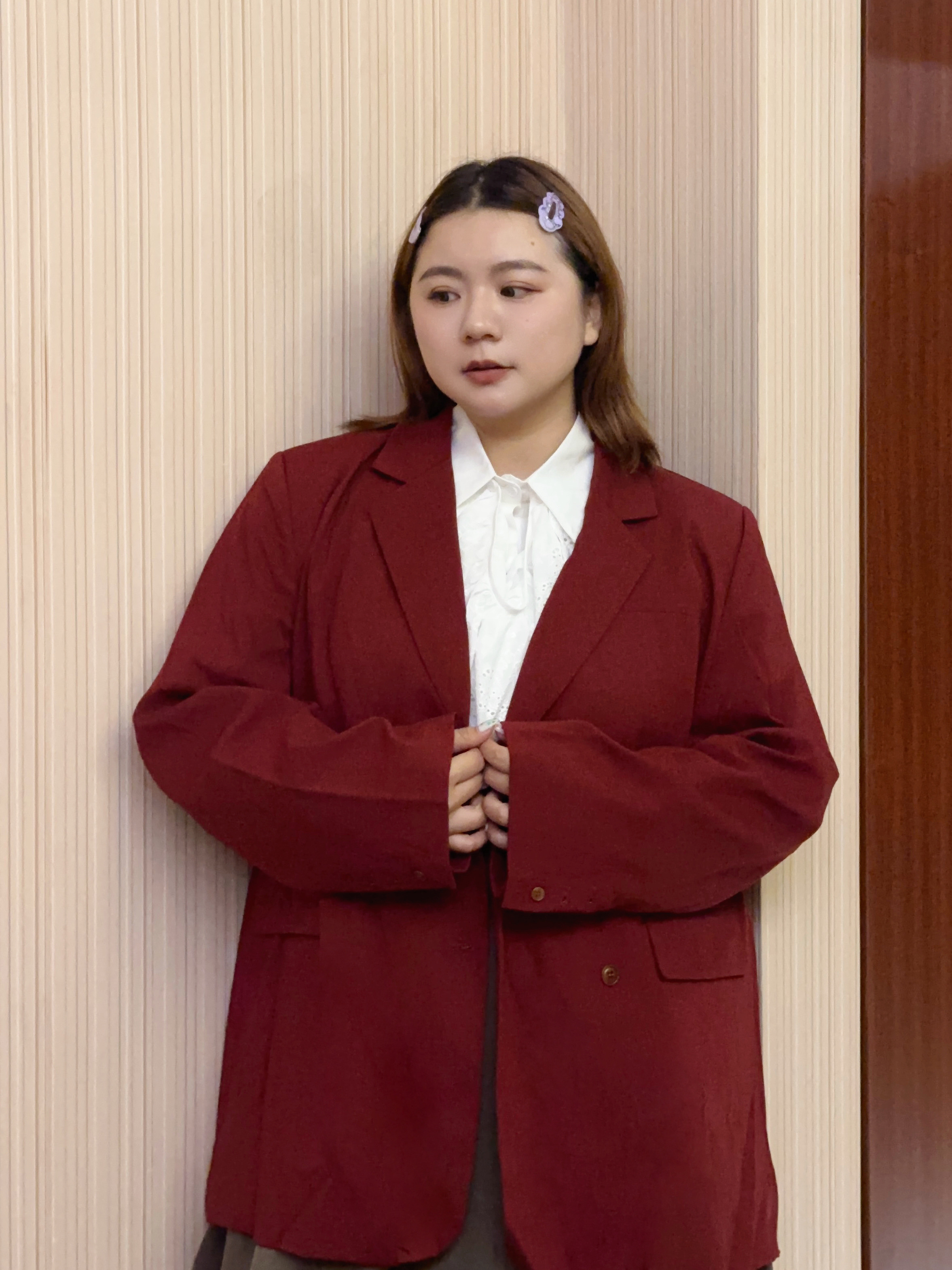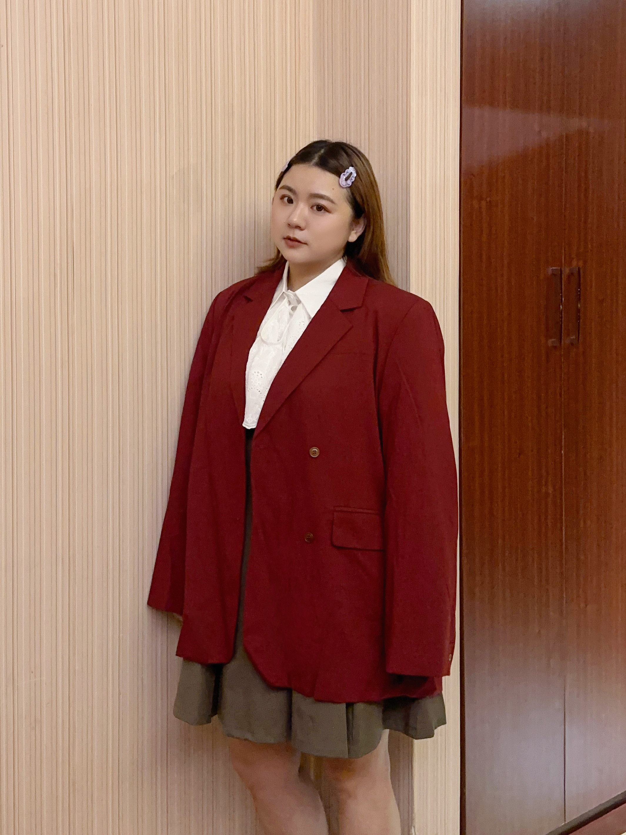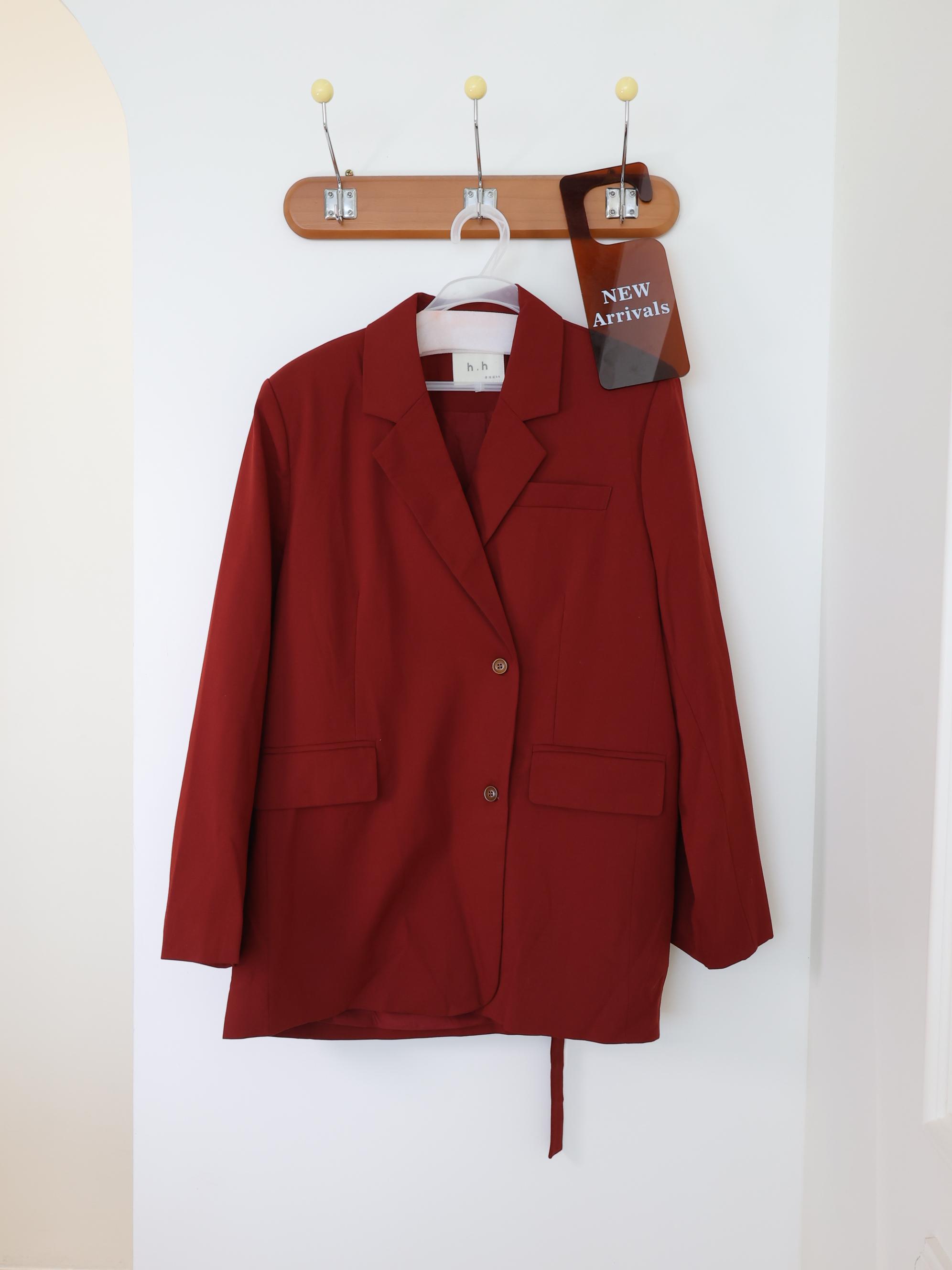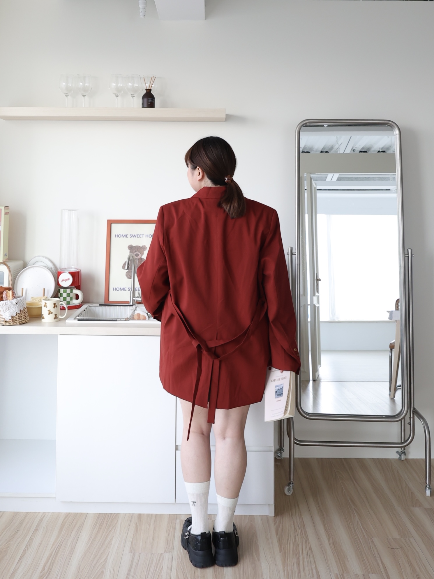 廣州連線-暗紅色墊肩西外(附綁帶)