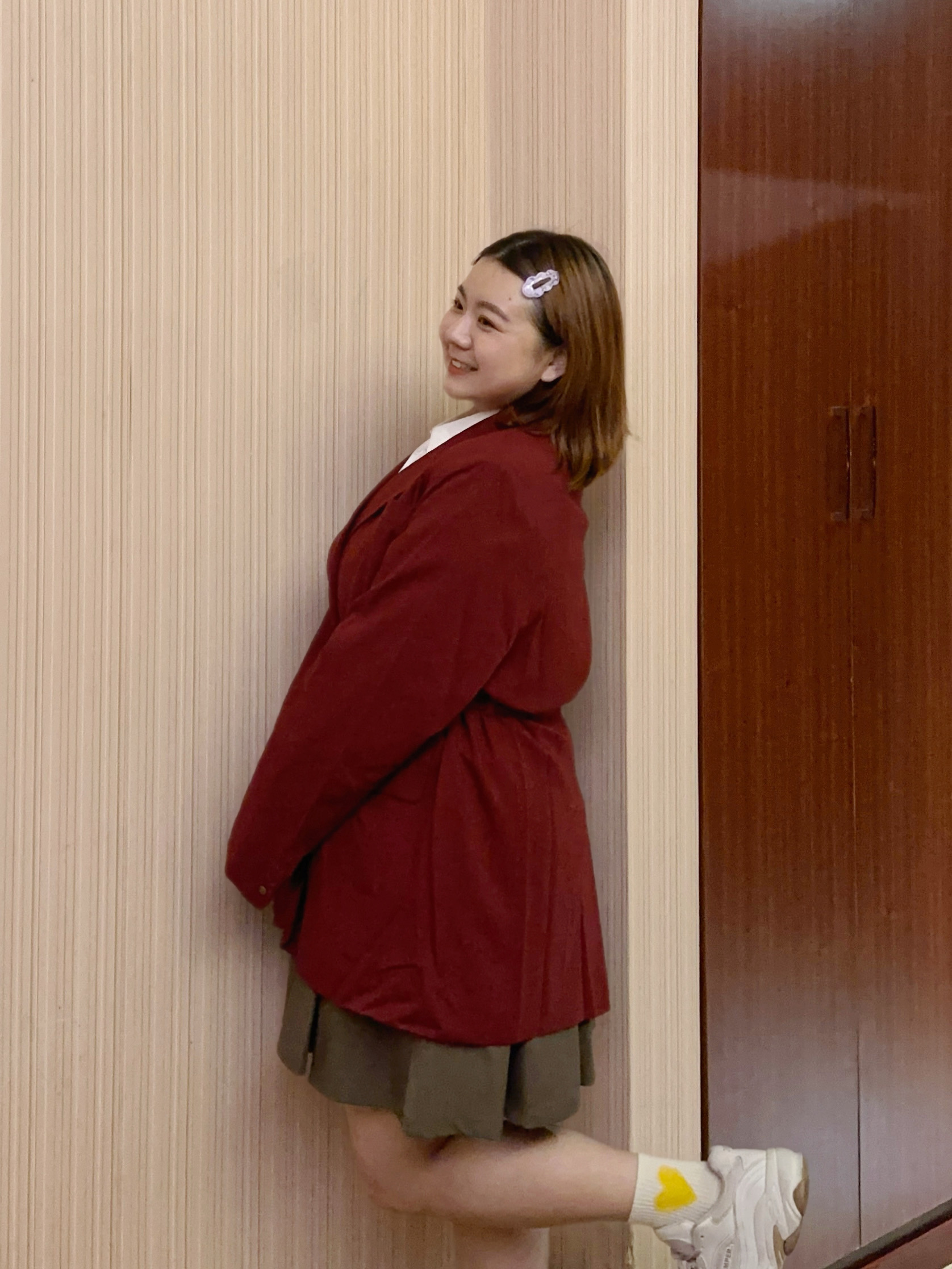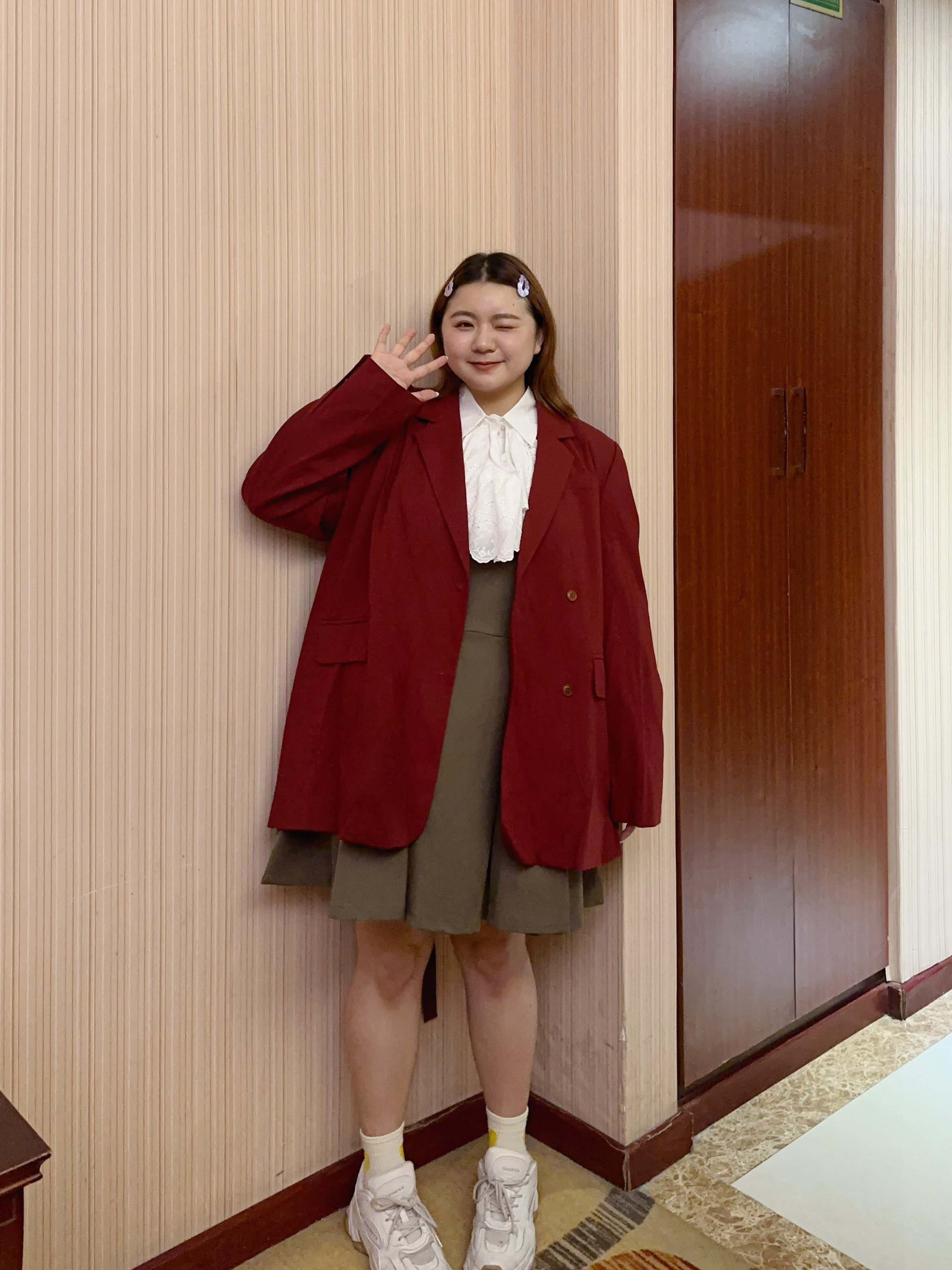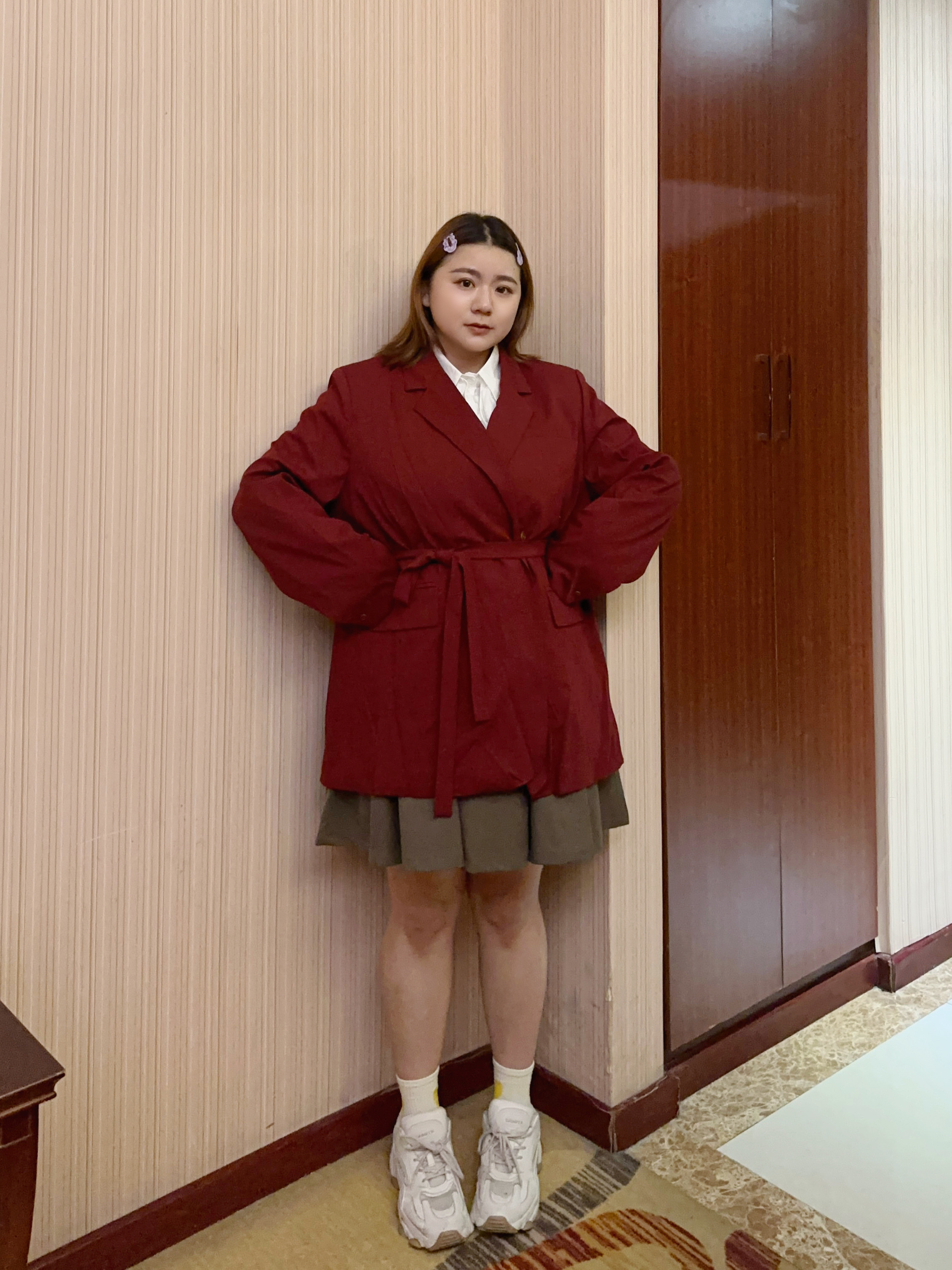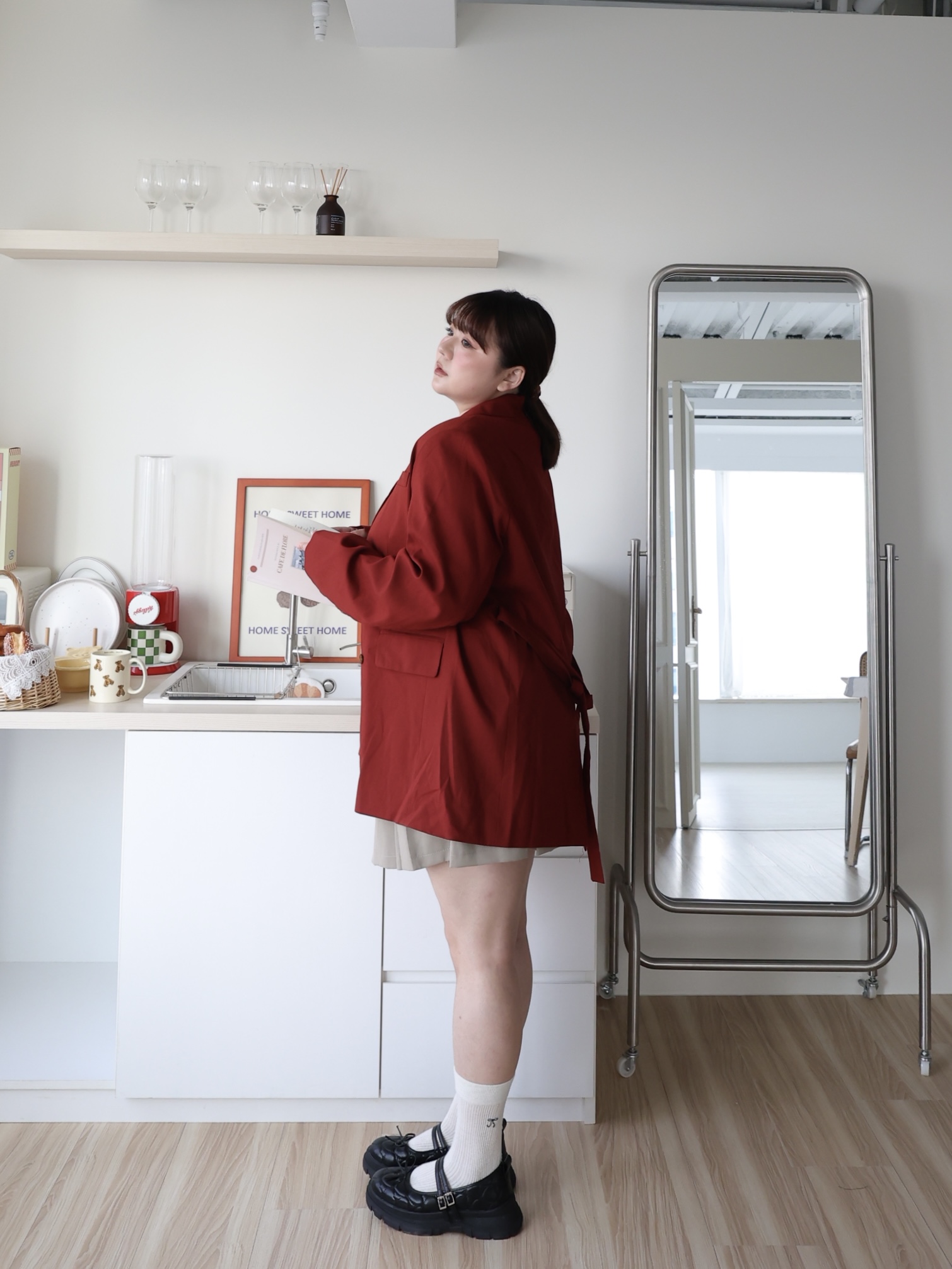 廣州連線-暗紅色墊肩西外(附綁帶)