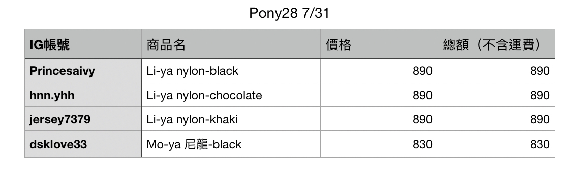 PONY28|7/31下單區